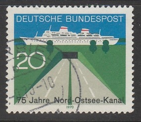 ФРГ 1970 год. 75 лет Северному Балтийскому каналу, 1 марка (гашёная)