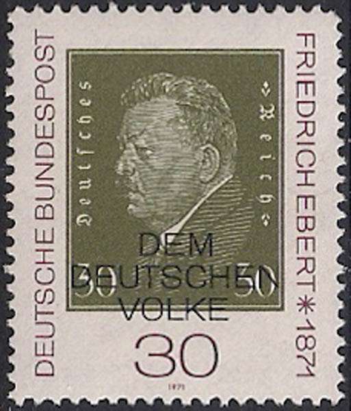 ФРГ 1971 год. 100 лет со дня рождения Первого президента Рейха Ф. Эберта. 1 марка