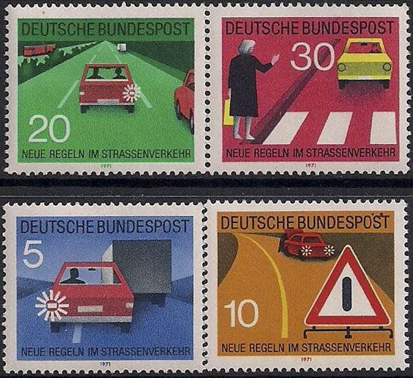 ФРГ 1971 год. Новые правила движения автотранспорта. 4 марки