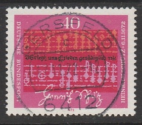 ФРГ 1972 год. 300 лет со дня смерти композитора Генриха Шютца, 1 марка (гашёная)