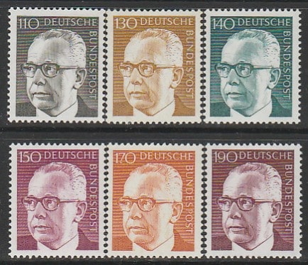 ФРГ 1972/1973 год. Президент Германии Густав Хайнеман, 6 марок.