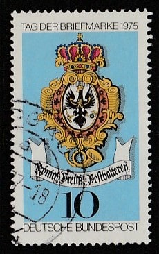 ФРГ 1975 год. День почтовой марки. Вывеска в королевской почтовой галерее, 1 марка (гашёная)