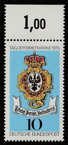 ФРГ 1975 год. День почтовой марки. Вывеска в королевской почтовой галерее, 1 марка с цифровым полем.
