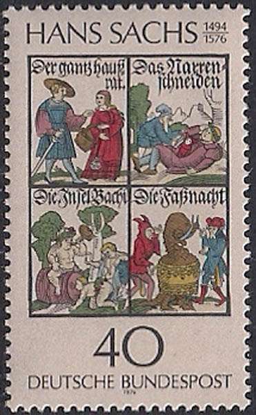 ФРГ 1976 год. 400 лет со дня смерти поэта и драматурга Г. Сакса. Иллюстрации к произведениям. 1 марка