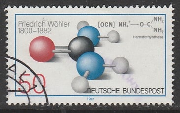 ФРГ 1982 год. 100 лет со дня рождения химика Фридриха Веллера. Модель химического соединения, 1 марка (гашёная)