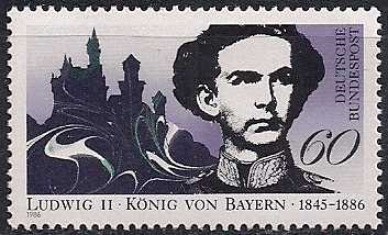 ФРГ 1986 год. 100 лет со дня смерти короля Баварии Людвига Второго. 1 марка