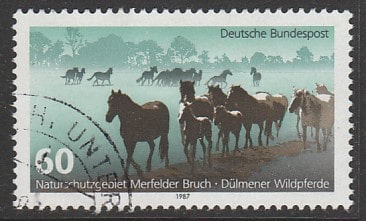 ФРГ 1987 год. Дикие лошади в заповеднике, 1 марка (гашёная)
