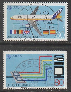 ФРГ 1988 год. Транспорт и связь. Самолет, телекоммуникации, 2 марки (гашёные)