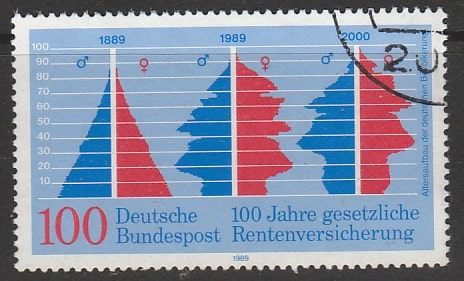 ФРГ 1989 год. 100 лет Закону о пенсионном страховании, 1 марка (гашёная)