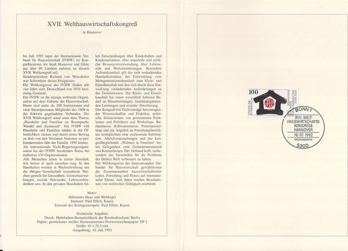 ФРГ 1992 год. Международный бизнес-конгресс в Гановере. Марка на листе с гашением первого дня