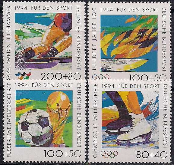 ФРГ 1994 год. Зимние Олимпийские игры в Лиллехаммере. Чемпионат мира по футболу в США. 4 марки