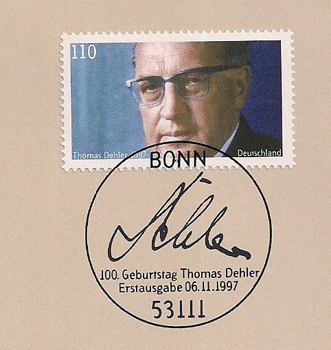 ФРГ 1997 год. 100 лет со дня рождения актера Томаса Делера. Марка на листе с гашением первого дня