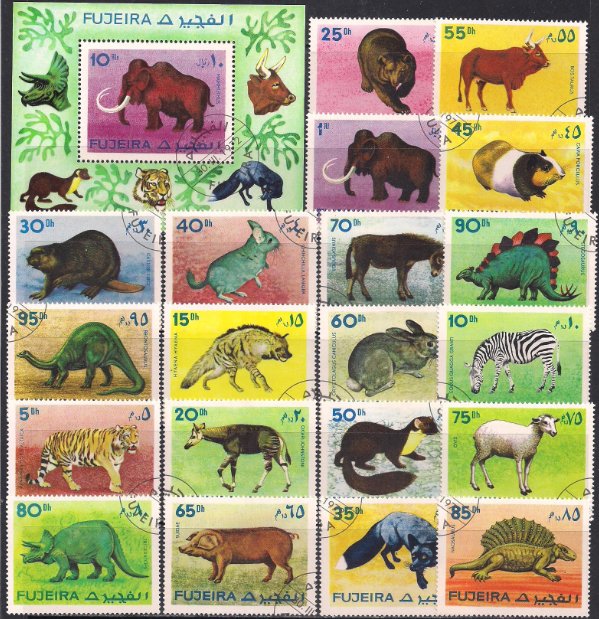 Фуджейра 1972 год. Динозавры и современная фауна. 20 марок + блок (гашеные)