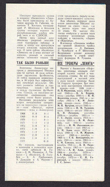 Футбольная программка. Динамо (Тбилиси) - Зенит (Ленинград),  Высшая лига, 1977 годФутбольная программка. Динамо (Тбилиси) - Зенит (Ленинград),  Высшая лига, 1977 годФутбольная программка. Динамо (Тбилиси) - Зенит (Ленинград),  Высшая лига, 1977 год