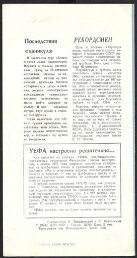 Футбольная программка. Ст. им. Кирова. Чемпионат СССР. Класс "А". Торпедо (М) - Зенит (Л). 11 июня 1972 г.
