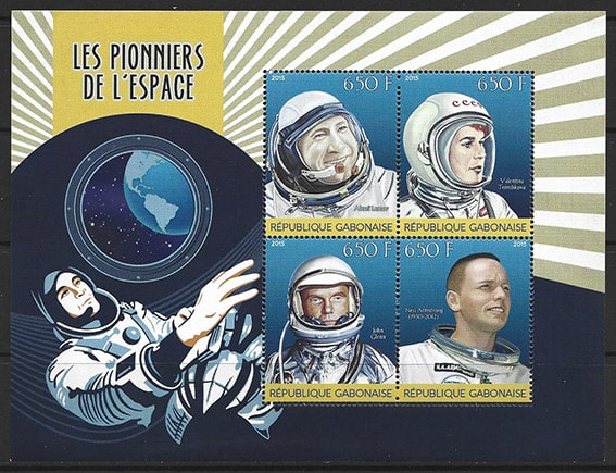 Габон 2015 год. Первые космонавты, малый лист