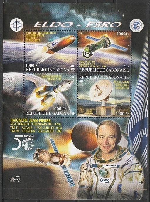 Габон 2017 год. Космос. Астронавт Франции Жан-Пьер Эньере, малый лист.