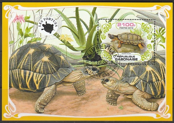 Габон 2019 год. Черепахи, блок (гашёный)