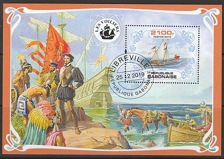 Габон 2019 год. Французская адмиральская галера "Ла Реаль", блок (гашёный)