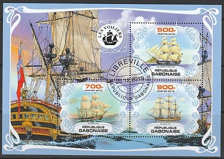 Габон 2019 год. Исторические парусники, малый лист (гашёный) Сувенирный выпуск.