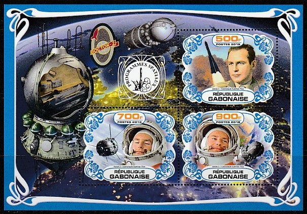 Габон 2019 год. Космический корабль "Восток-2". Космонавт Герман Титов, малый лист.