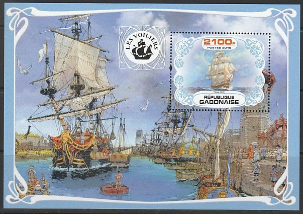 Габон 2019 год. Парусники, блок. Сувенирный выпуск.