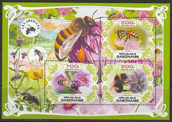 Габон 2019 год. Пчёлы, малый лист. Сувенирный выпуск.