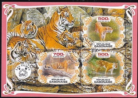 Габон 2019 год. Тигры, малый лист (гашёный)