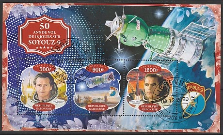 Габон 2020 год. 50 лет запуску космического корабля "Союз-9", малый лист (гашёный) Сувенирный выпуск.