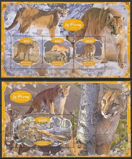 Габон 2020 год. Хищные кошки. Пума, малый лист + блок. Сувенирный выпуск.