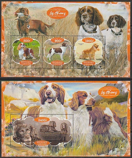 Габон 2020 год. Охотничьи собаки, малый лист + блок (I) Сувенирный выпуск.