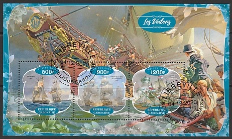 Габон 2020 год. Парусные корабли, малый лист (гашёный)