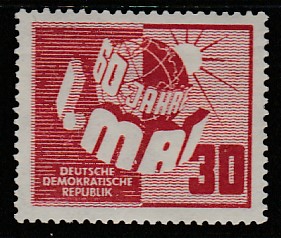ГДР 1950 год. 60 лет празднику "1 Мая", 1 марка. наклейка