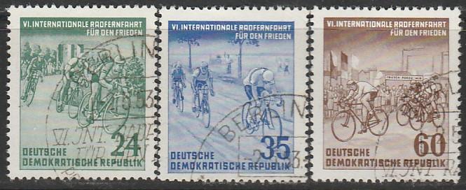 ГДР 1953 год. Международная велогонка Прага - Берлин - Варшава, 3 гашёные марки