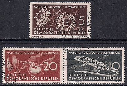 ГДР 1957 год. Цветы, ящерица. 3 гашёные марки