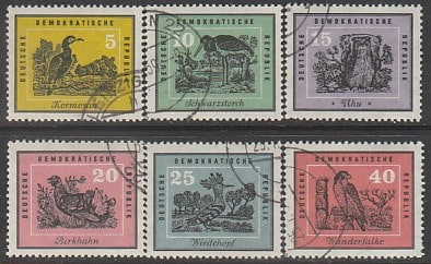ГДР 1959 год. Птицы, 6 марок (гашёные)