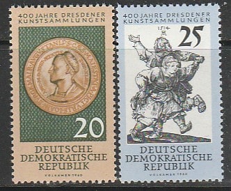 ГДР 1960 год. Коллекция Дрезденского музея, 2 марки (наклейка)