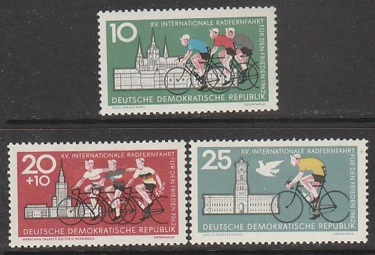 ГДР 1962 год. Международная велогонка Берлин-Прага-Варшава, 3 марки (наклейка)