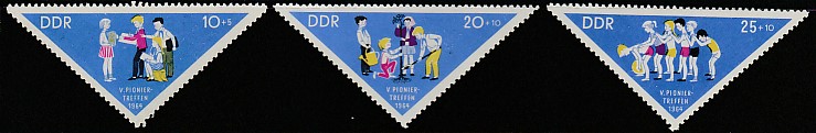 ГДР 1964 год. Пионерская встреча в Карл-Маркс-Штадте, 3 марки (с наклейкой)