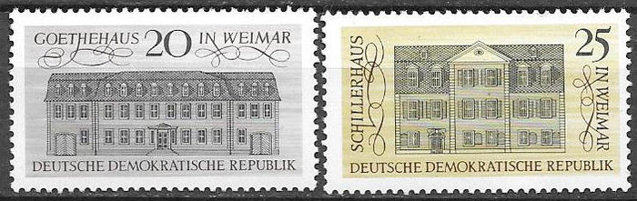 ГДР 1967 год. Архитектура. Дома Гетэ и Шиллера, 2 марки