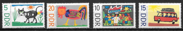 ГДР 1967 год. Детские рисунки, 4 марки из 6. неполная