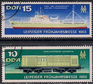 ГДР 1968 год. Лейпцигская весенняя ярмарка. Судно и локомотив. 2 гашёные марки
