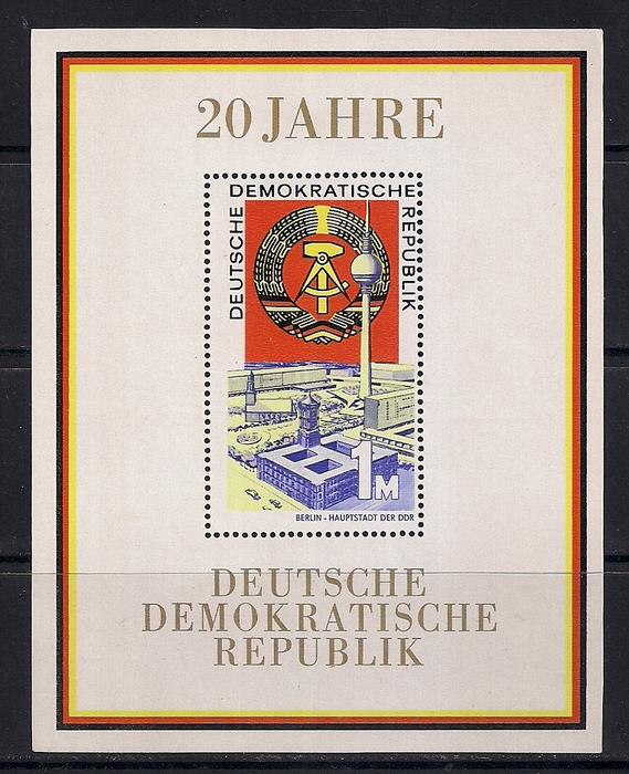 ГДР 1969 год. 20 лет со дня образования ГДР. 1 блок (2,2)