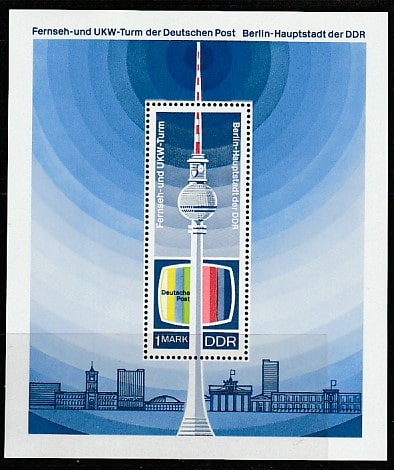 ГДР 1969 год. Открытие берлинской телебашни, блок.