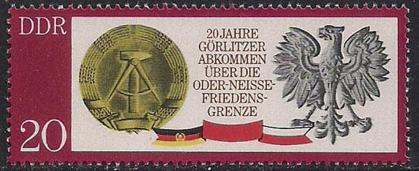 ГДР 1970 год. 20 лет Горлицкому соглашению о границе Одер-Нейсе. 1 марка