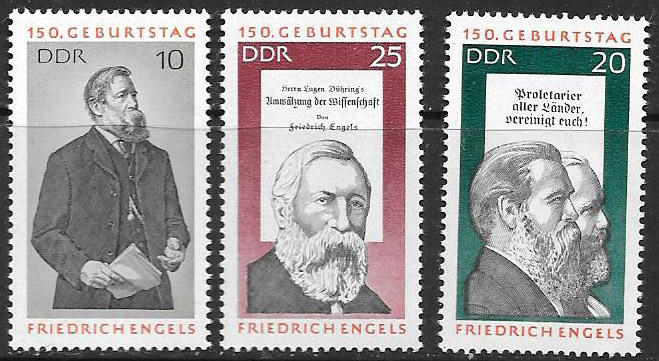 ГДР 1970 год. Фридрих Энгельс, 3 марки. 150 лет (2)
