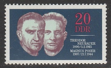 ГДР 1970 год. Участники Движения Сопротивления Т Нойбауэр и М. Позер, 1 марка.