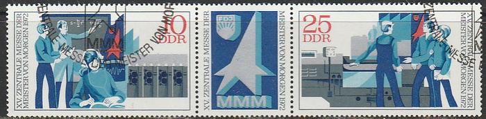 ГДР 1972 год. Выставка рабочей молодёжи в Лейпциге, 2 гашёные марки с купоном в сцепке