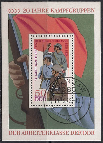 ГДР 1973 год. 30 лет созданию отрядов Самообороны. 1 гашёный блок