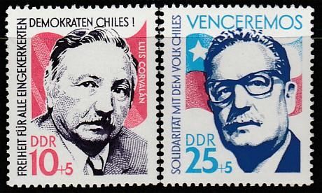 ГДР 1973 год. Луис Корвалан и Сальвадор Альенде, 2 марки
